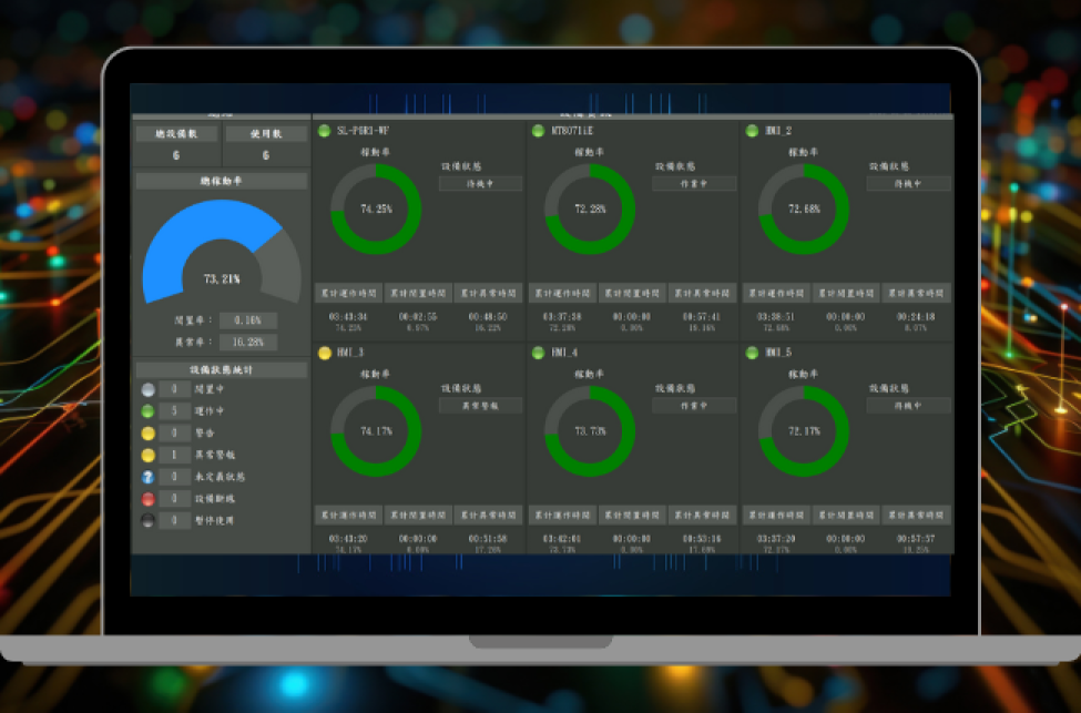 即時整合產線設備稼動與效率數據, 以可視化儀表板呈現生產狀況與異常警示, 協助主管快速掌握整線效能 -